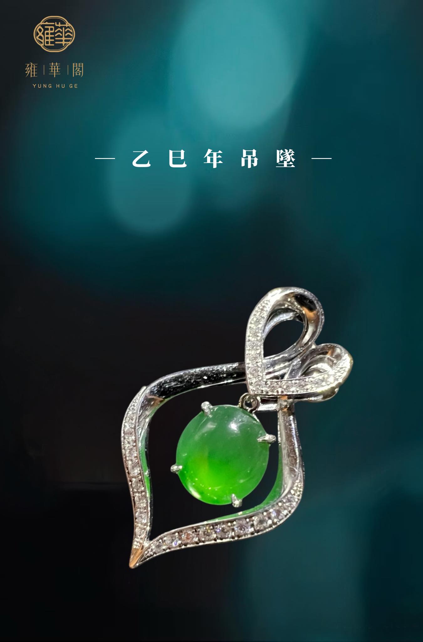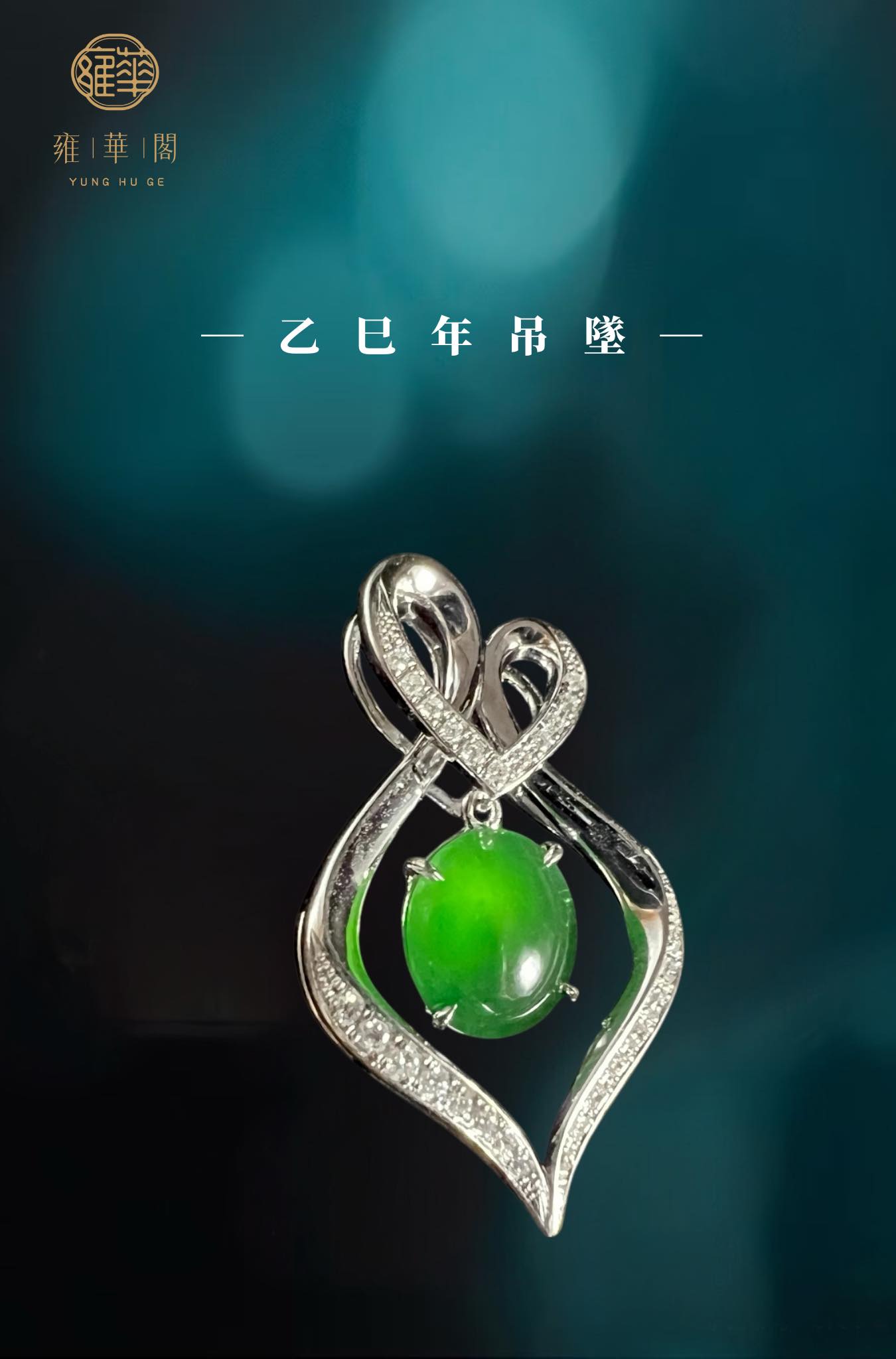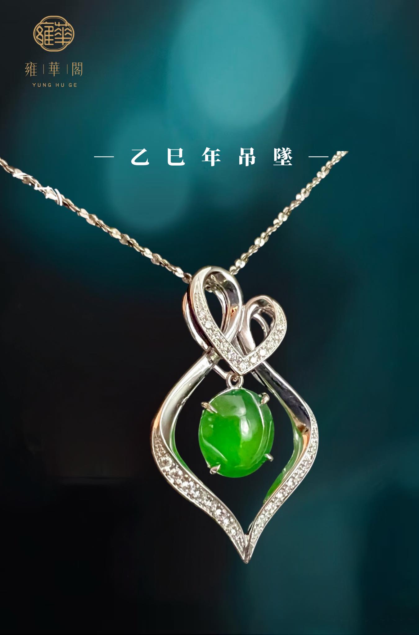 冰陽凝心,線條纏繞出情感的輪廓,心形交織,似緊扣不語的深情,翡翠懸於中央,晶亮如意鑽芒點點,如思緒微光,一縷柔光、一段心語,悄然佩於胸前,默默守候於心。