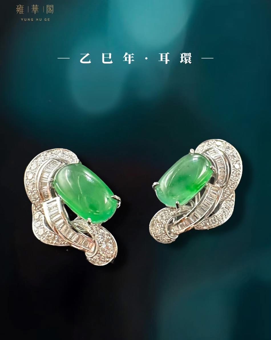 商品規格 寶石:天然翡翠 A 貨 產地:緬甸木拿礦區 顏色:綠 種地:玻璃種 材質:鉑金、天然真鑽 0.76 克拉、T 鑽 0.37 克拉(共 1.13 克拉) 主石尺寸:約長 12 mm × 寬 6.5 mm(翡翠 2 顆) 尺寸:全長約 25 mm