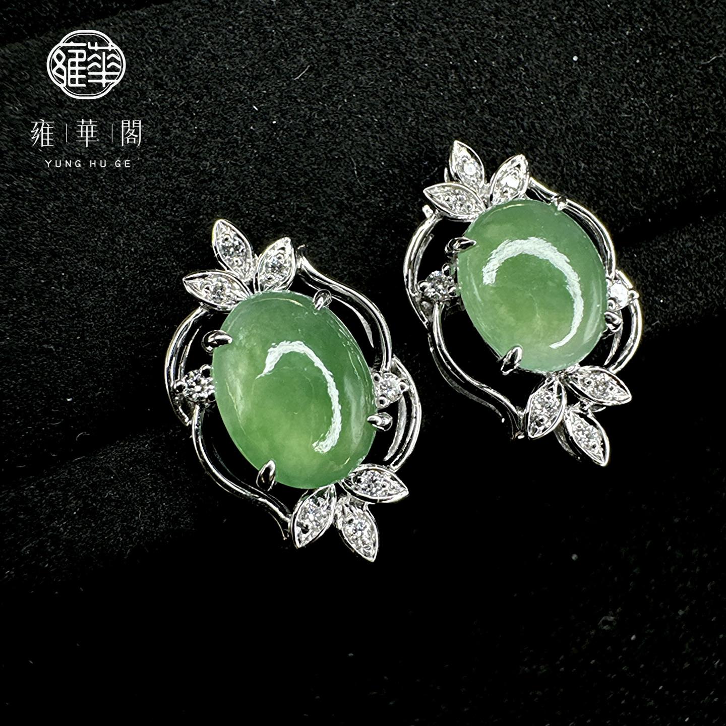 冰種飄花設計款翡翠|耳環