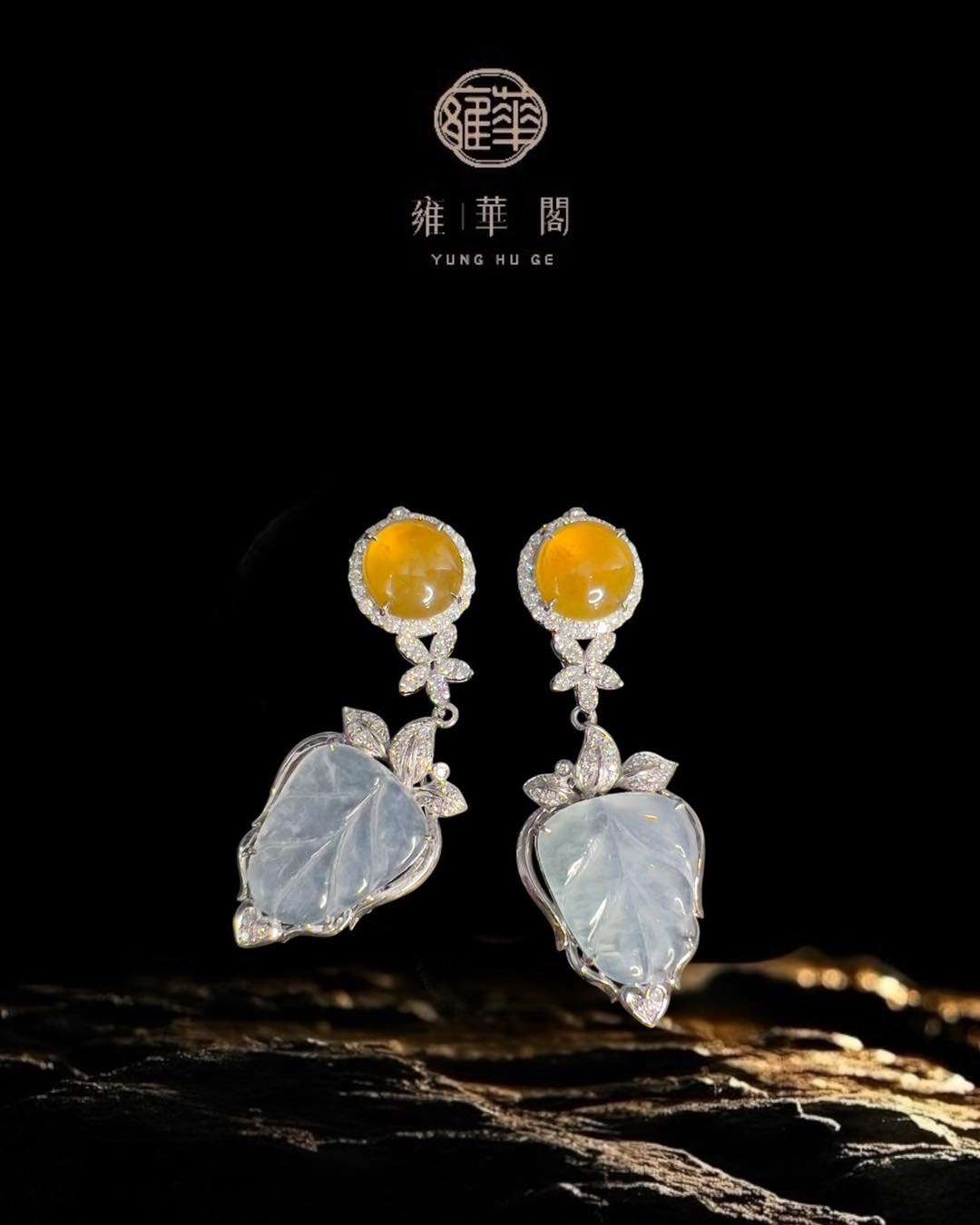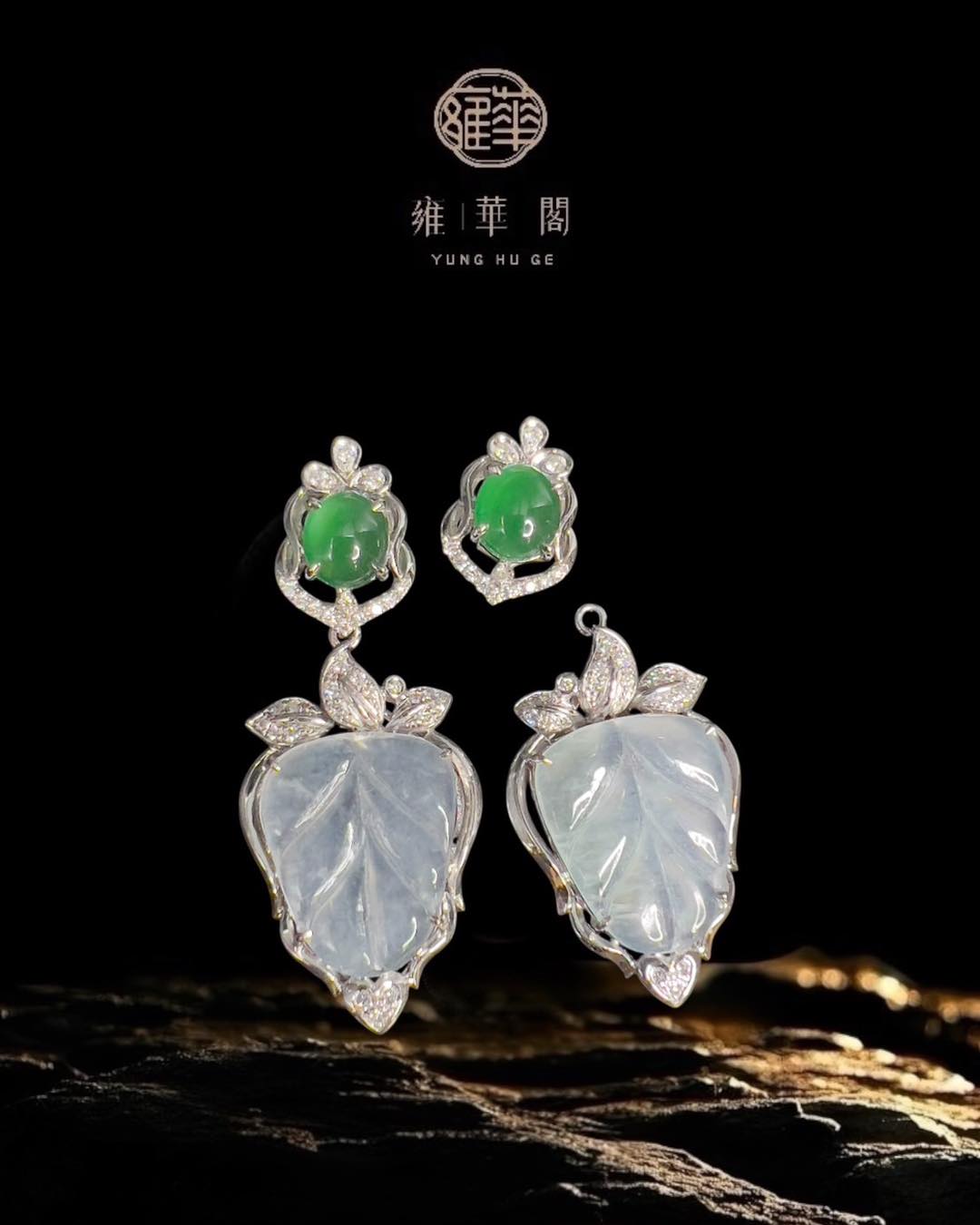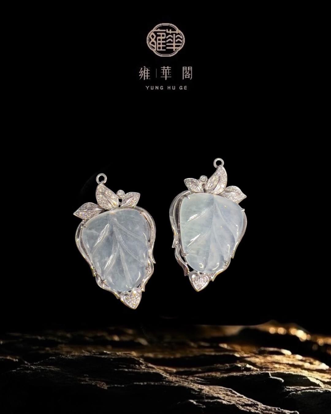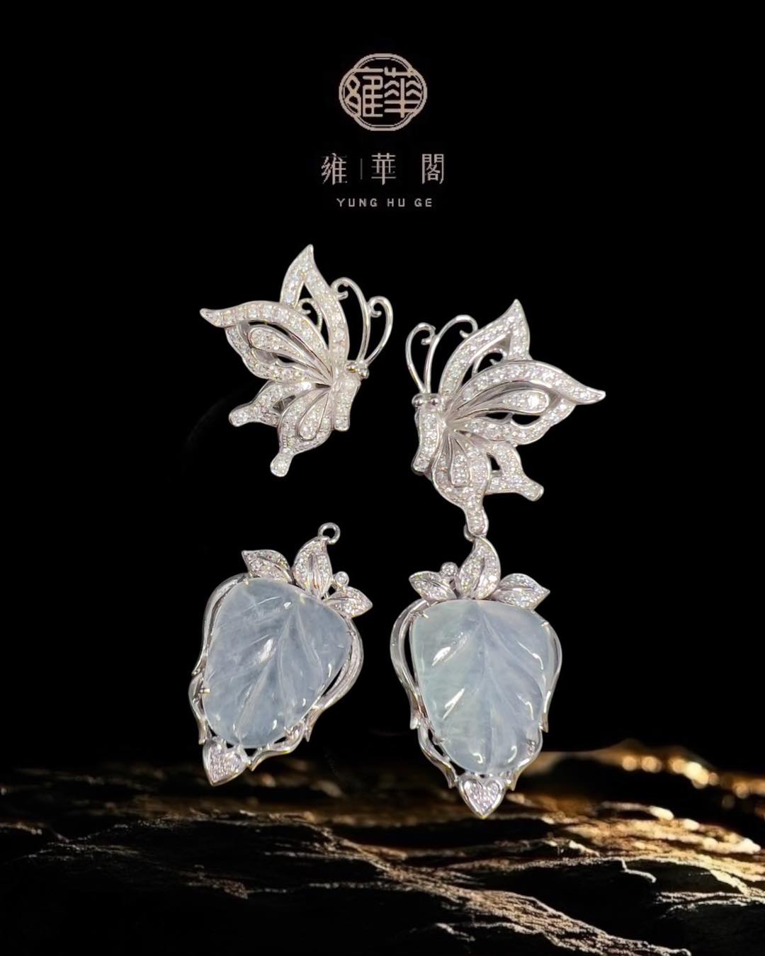 白翡清潤透亮,光澤內斂而穩定,鑽石細緻點綴於輪廓之間,溫柔映光。