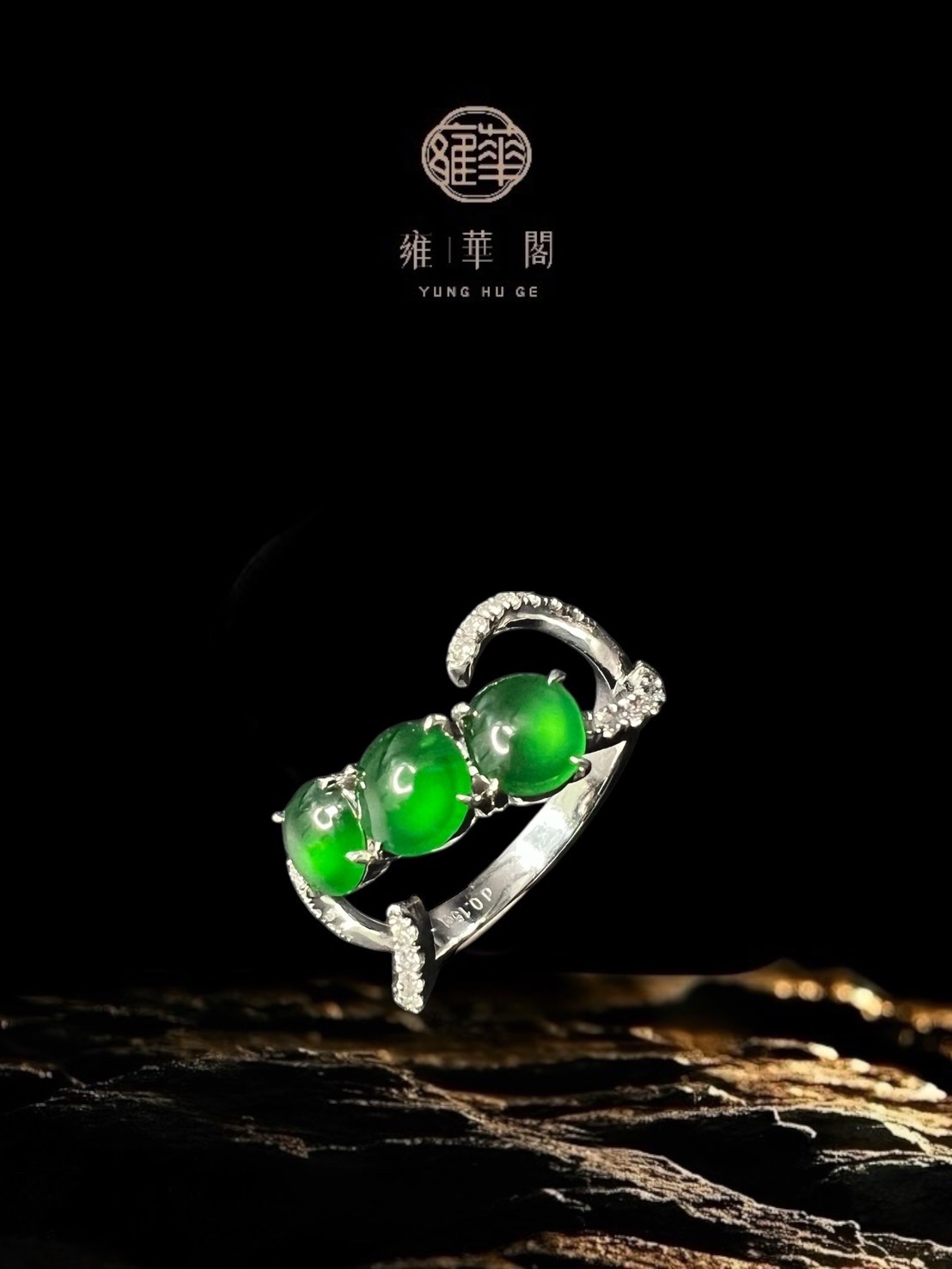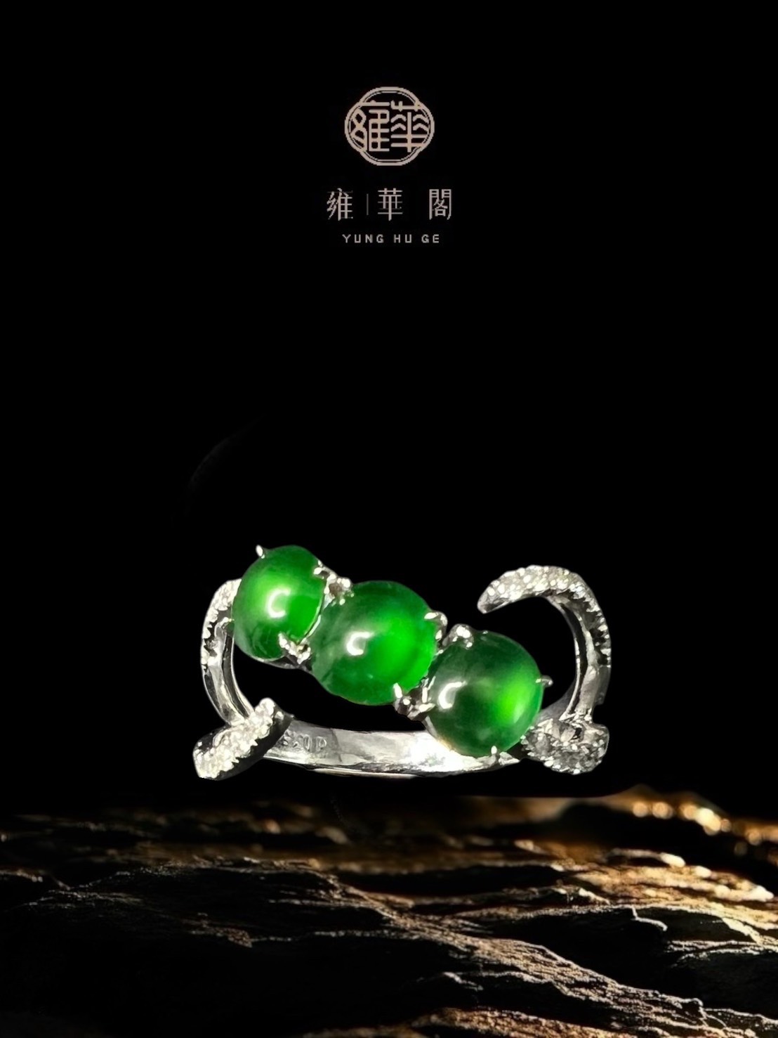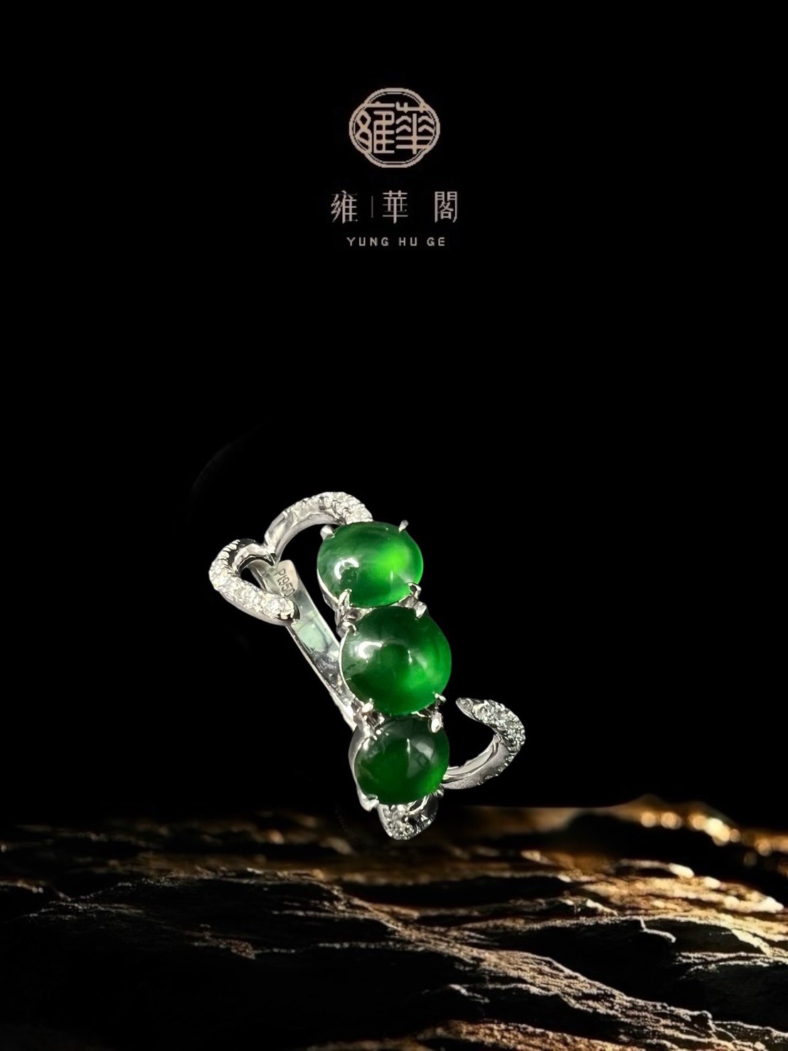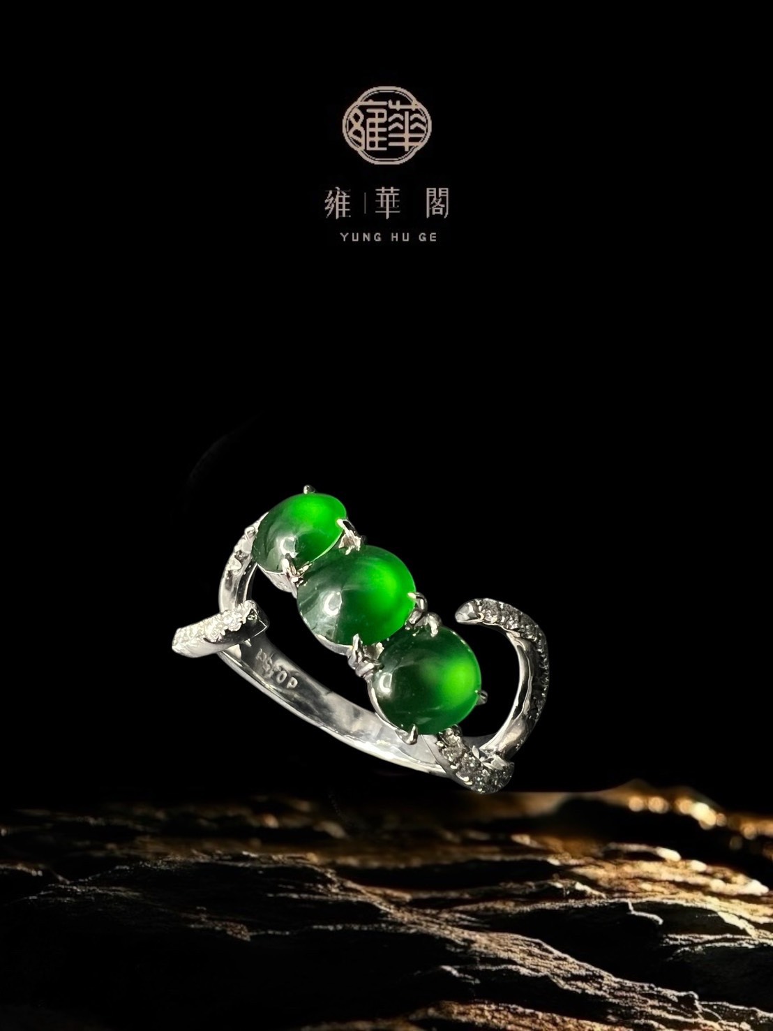 翡翠蛋面如露凝成一線,光感清透而富有層次;簡約俐落留白恰到好處,於指間流轉之際,自然映現沉靜而純粹的高級質感。